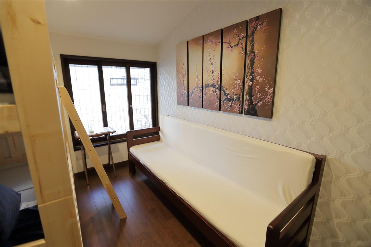 1 to 2 people use. There is a bunk bed and a sofa and a Japanese and Western style room with a large cherry blossom picture on the wall.